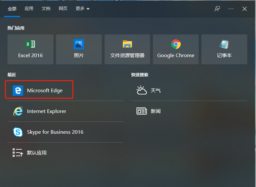 1、在win10系统的电脑中打开Edge浏览器