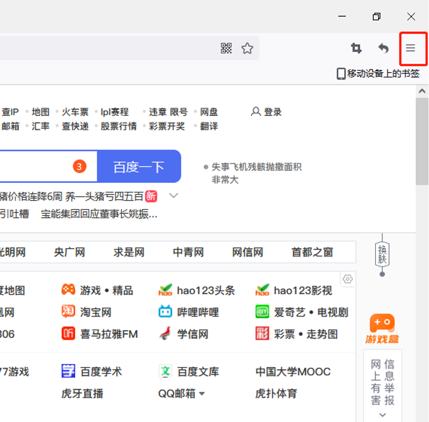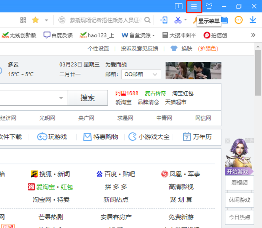 1、打开浏览器,点击右上角“显示菜单“按钮