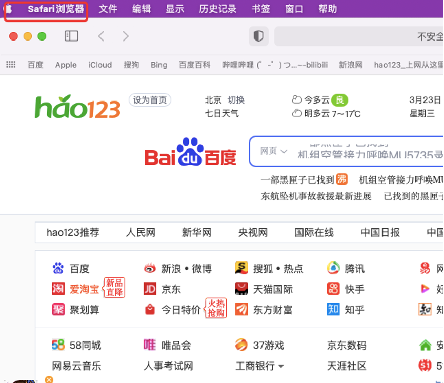 1、打开safari浏览器,点击左上角“Safari浏览器”
