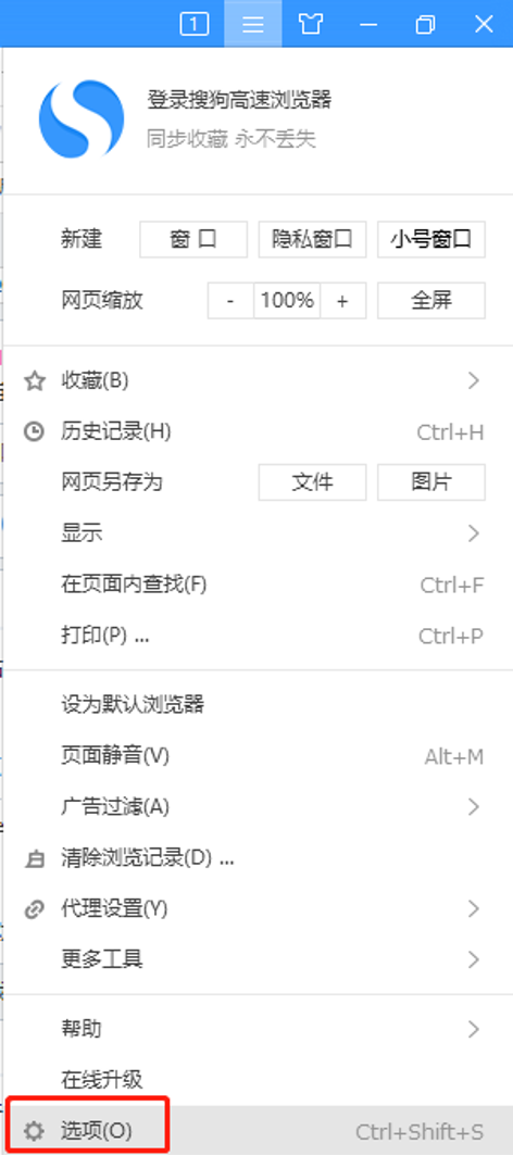 2、在下拉菜单中点击“选项”